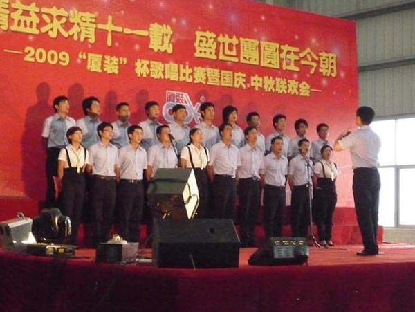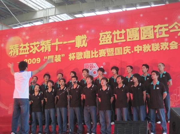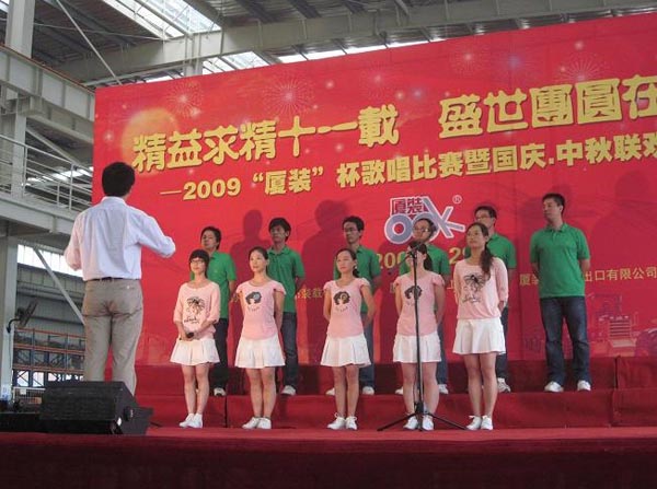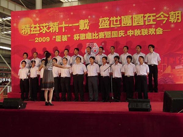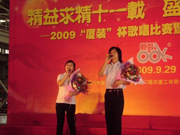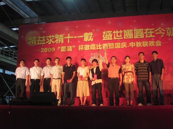 9月29日下午,2009年度“廈裝杯”歌唱比賽在廈裝公司總裝車間舉行。此次歌唱比賽以“精益求精十一載、盛世團(tuán)圓在今朝”為主題,賀祖國60周年華誕、喜迎中秋、慶祝廈裝成立11周年。公司及各部門從6月份開始籌備此次比賽,此次比賽分為集體組和個(gè)人組,集體組(合唱)以部門為單位,最終有6支隊(duì)進(jìn)入當(dāng)天的決賽,個(gè)人組通過先前的部門推薦及預(yù)賽選拔,最終有11人闖入決賽。